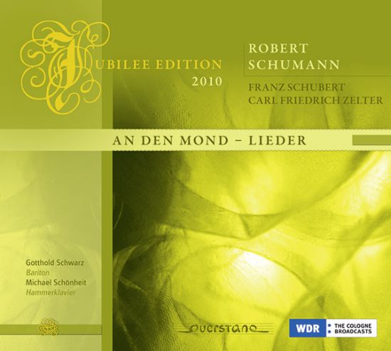 Robert Schumann, dessen 200. Geburtstag die Musikwelt im Jahre 2010 begeht, gehörte zu den produktivsten Liedkomponisten aller Zeiten. Hatte er sich nach einigen frühen Liedversuchen zunächst ausschließlich der Komposition von Klavierstücken gewidmet, so explodierte das Liedschaffen im sogenannten Liederjahr 1840 plötzlich, und seitdem schrieb er zwar schubweise, aber doch mit einer gewissen Regelmäßigkeit neue Werke in dieser Gattung. Den Schaffensausbruch des Liederjahres erklärte Schumann später damit, daß erst zu diesem Zeitpunkt eine neue Dichtergeneration mit ihren qualitätvollen Werken, die er dann vertonen konnte, zur Verfügung gestanden habe. Anhand von Schumanns Heine- oder Eichendorff-Vertonungen kann man diese Argumentation durchaus nachvollziehen. Diese sind auf der vorliegenden CD, die in Kooperation mit dem WDR entstanden ist, u.a. mit dem Liederkreis op. 39 vertreten. Schumann war sich allerdings sehr wohl bewußt, daß andere Komponisten im Metier der Liedkomposition allermindestens sehr gute Vorarbeit geleistet hatten. Diese Einschätzung trifft explizit auf Franz Schubert zu. Gotthold Schwarz und Michael Schönheit interpretieren auf der CD u.a. einige Vertonungen Schuberts und Carl Friedrich Zelters, die auf die gleiche Textgrundlage zurückgreifen, und zeigen damit ein interessantes Bild der Entwicklung innerhalb der Liedkomposition. Das Titellied „An den Mond“ erklingt gar in einer Verschränkung von Vertonungen beider Komponisten.